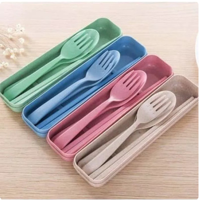 Set peralatan makan portable yang terbuat dari bahan plastik abs khusus alat makan yang kokoh.