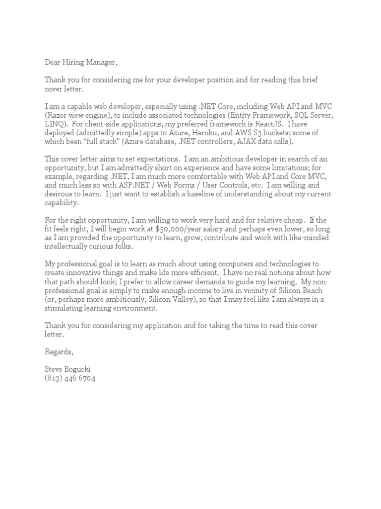 Write an engaging web developer cover letter with indeed's library of free cover letter samples and templates. It efficiently lays out the skills that thomas has, and piques the company's interest about the shorter the better: Web developers are responsible for creating websites that are both functionally and aesthetically pleasing to the user. Junior java developer cover letter sample. Web developer cover letter sample (text).